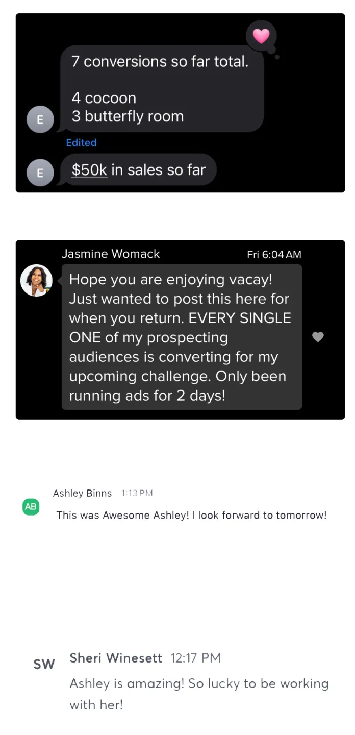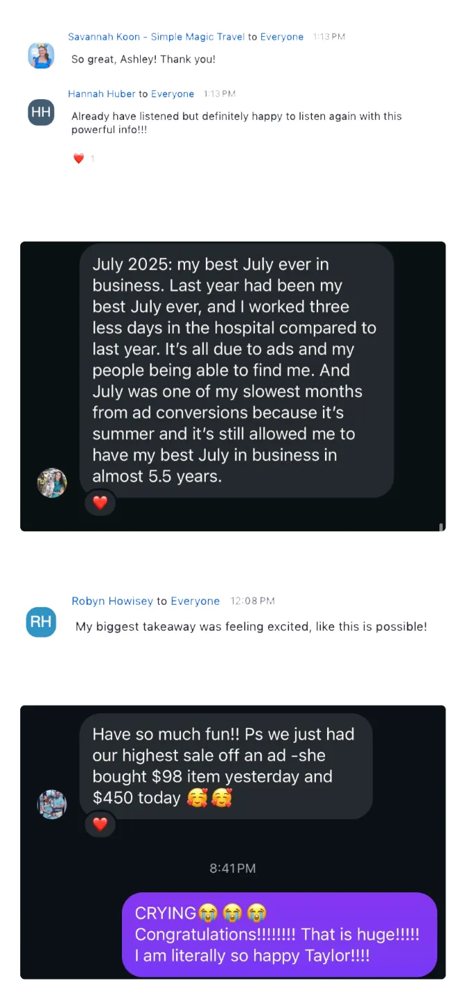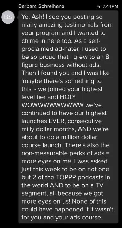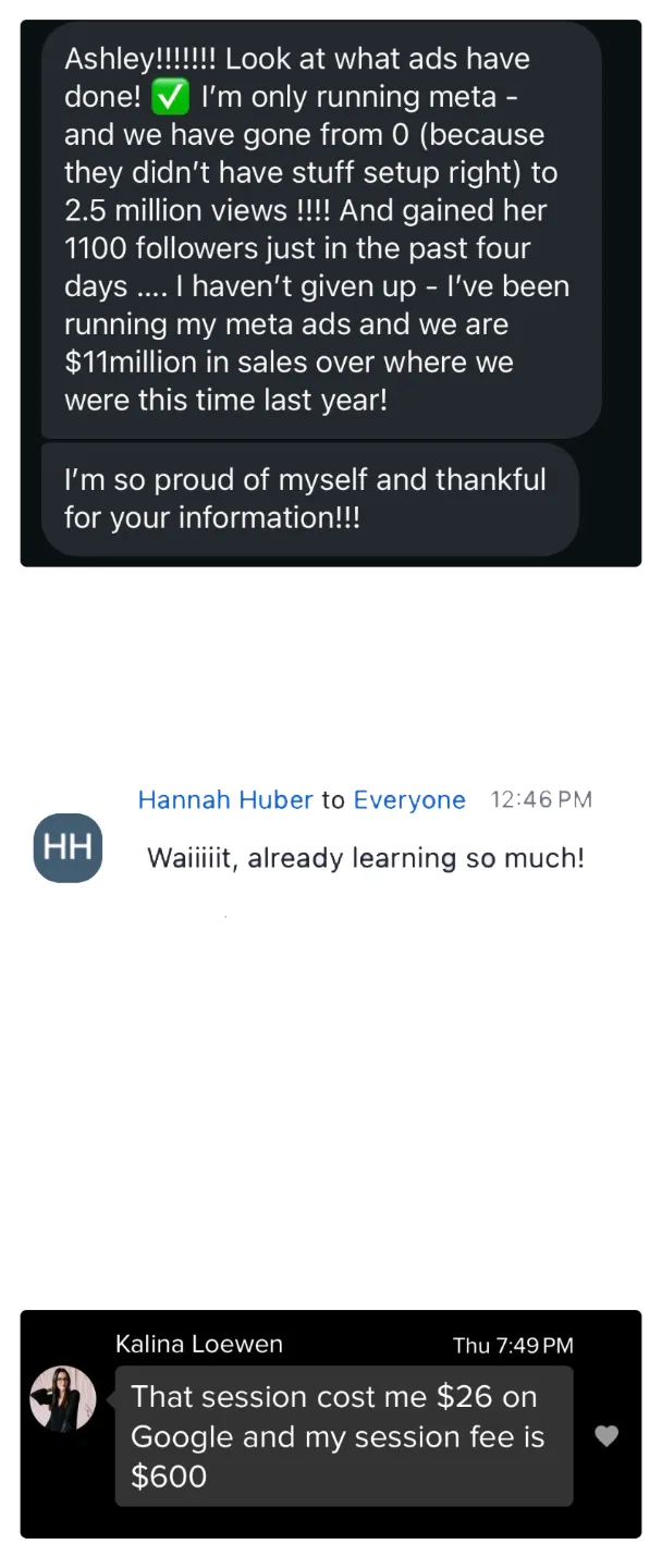Direct Coaching from Ashley: Personalized, on-the-spot coaching where Ashley answers your ad questions directly and helps refine your strategy. ($3,997 value)